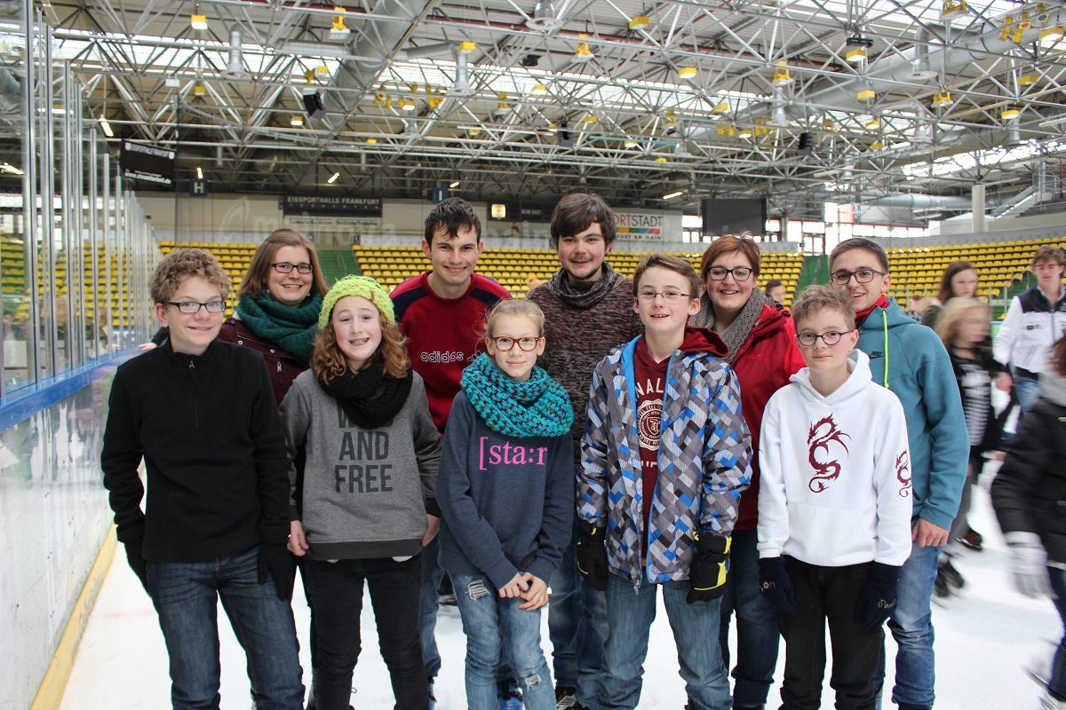 Nach einigen Jahren ohne Spaß auf dem Eis machte die Jugend des Musikvereins Germania Somborn am 31. Januar wieder einmal einen Ausflug in die Eissporthalle nach Frankfurt. Mit Schlittschuhen und jeder Menge guter Laune im Gepäck ging es für einige Kinder und Jugendliche des Vereins „Ab auf’s Eis“. Trotz tollen Wetters blieb dann leider aufgrund einer Veranstaltung nur der Innenbereich der Eissporthalle für den Fahrspaß aller Beteiligten, was der allseits guten Stimmung aber keinen Abbruch tat. Neben einer kurzen Fotosession, einem hindernisreichen Fangspiel auf dem Eis und diversen Kunststückchen hat sich der gesamte Verein im Lokomotiven-Eisschnelllauf geübt. Was das ist? Man fährt in einer Art Lokomotiven-Polonaise übers Eis, wobei immer der hinterste „Waggon“ den Rest des Zugs überholt und dann zu neuen Lok wird. Während das Eis dann für eine zweite Session erneuert wurde, gab es eine kleine Mittagspause, in der Pommes, Currywurst und Hamburger natürlich nicht fehlen durften. Danach wurden noch ein paar schwungvolle Runden gedreht, bevor es am frühen Abend mit dem Zug wieder zurück in die Heimat ging. Die Bilanz dieses tollen Nachmittags kann sich durchaus sehen lassen: Null Verletzte, wenige Stürze, viele Talente – ein rundum gelungener Tag! Grund genug für alle Beteiligten, sich schon jetzt auf den nächsten tollen Ausflug mit der Musikverein-Jugend zu freuen!